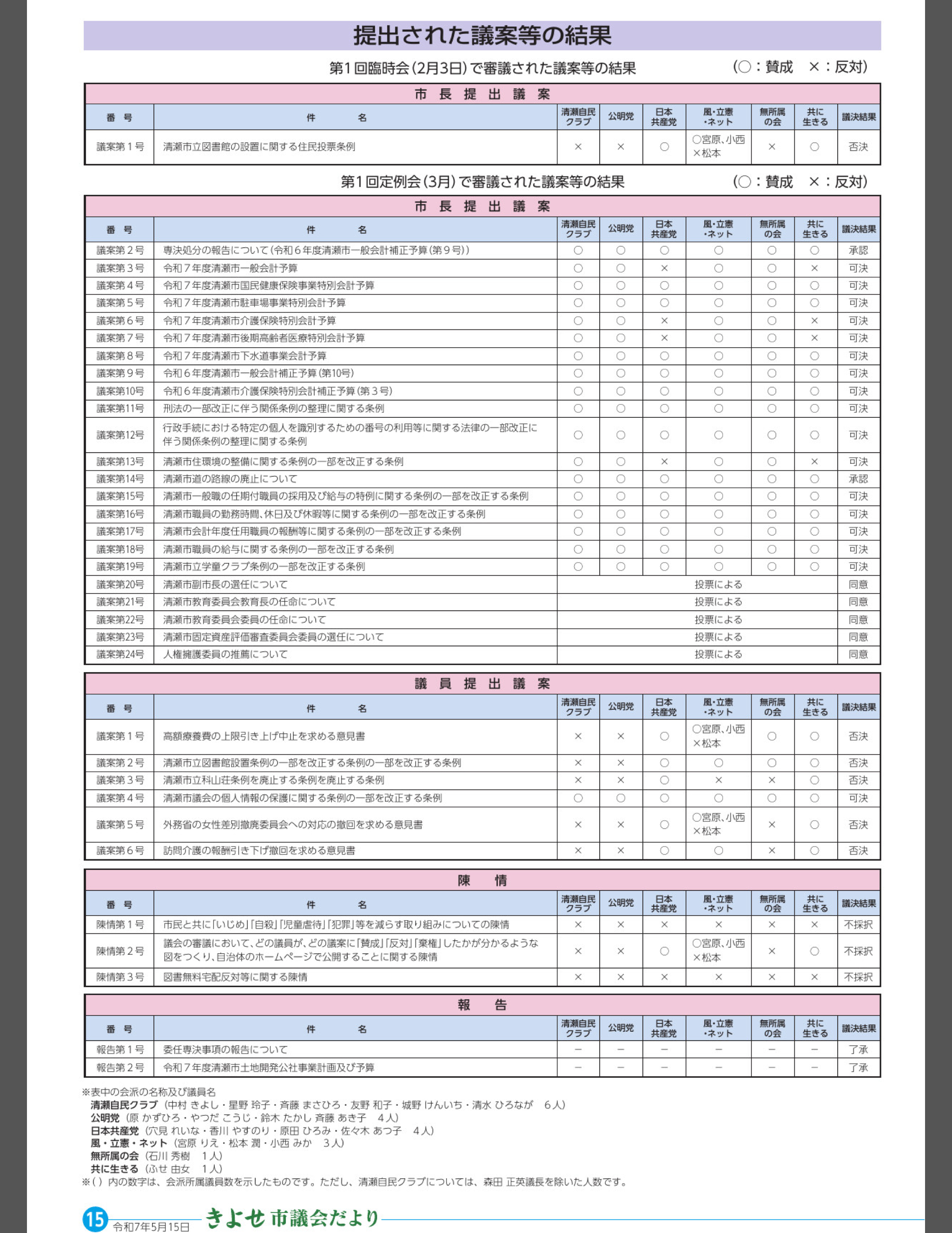 しかし現在でも、「きよせ市議会だより」のPDFが市ホームページに掲載されており、各議員の賛否が確認できる状況にあります。
